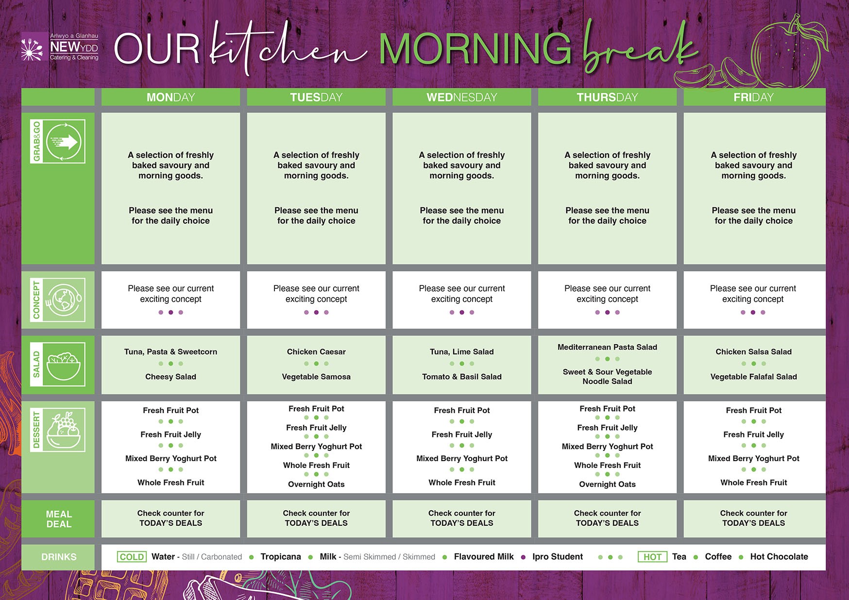 NEWydd High School Morning Menu